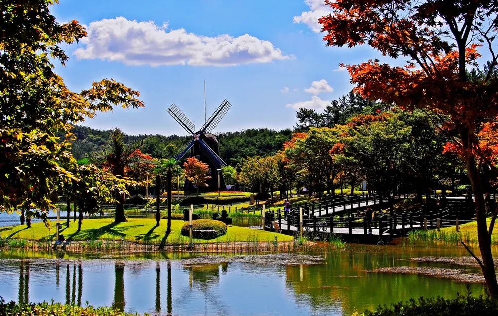 봄에는 싱그러운 녹음과 튤립, 여름엔 숲 그늘, 가을엔 단풍, 겨울엔 조용한 흰 눈길까지 사계절 힐링이 가능한 공간이에요.